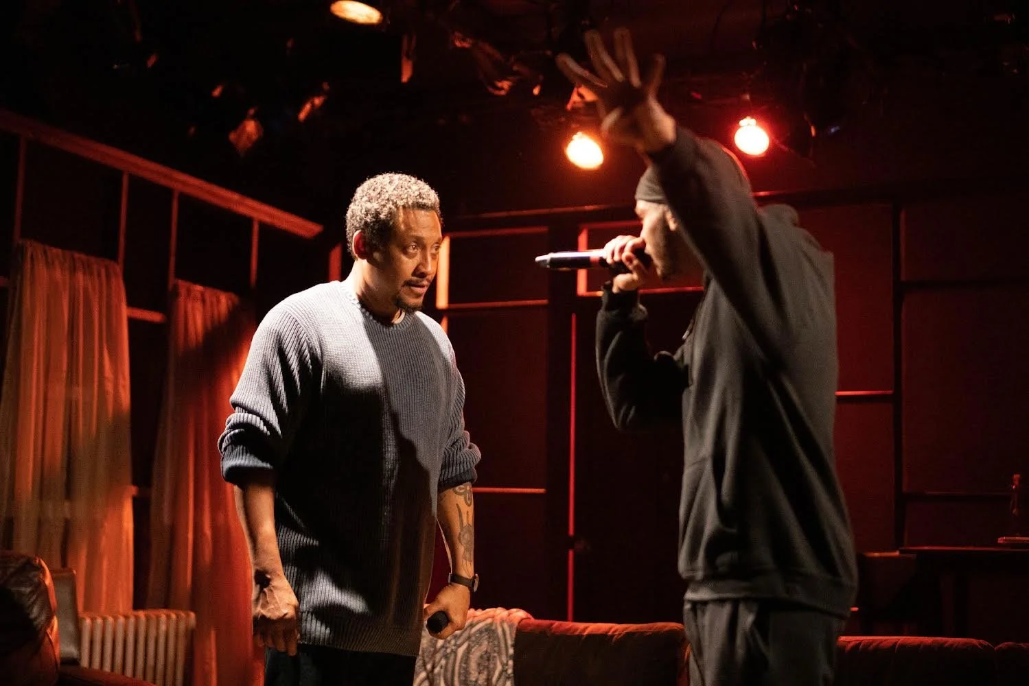 “The set by Romello Huins is perfect: a living room framed by open walls, intimate enough to enable the audience to live, breathe, and feel along with the characters, and yet open to enable their dreams and future hopes to soar.”